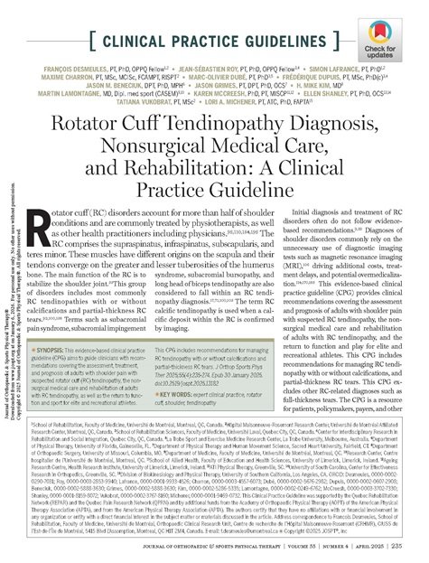 Lori A. Michener, PT, ATC, PhD, FAPTA - Citation: J Orthop Sports Phys Ther. 2025;55(4):235-274. Epub 30 January 2025. doi:10.2519/jospt.2025.13182